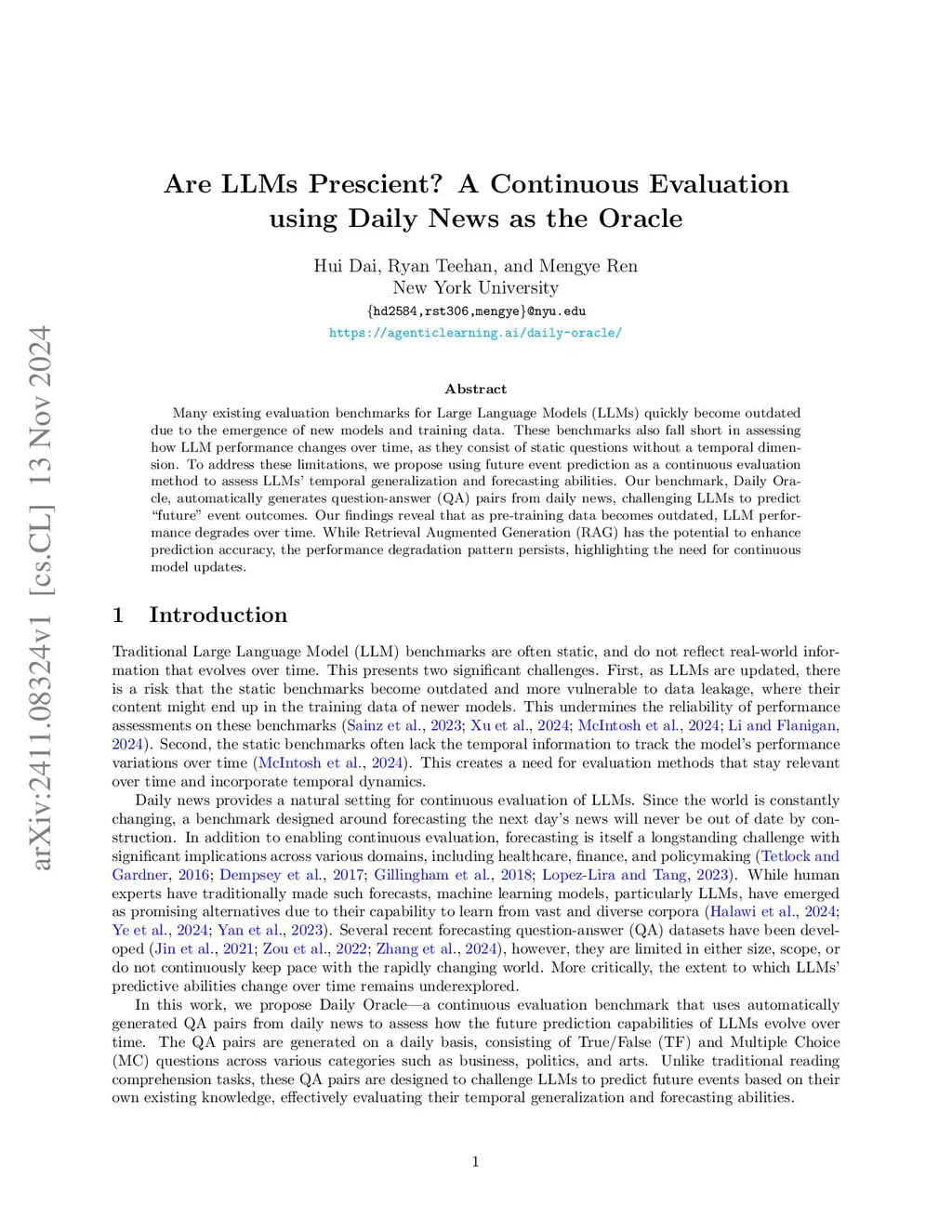 Are LLMs Prescient? A Continuous Evaluation using Daily News as the Oracle