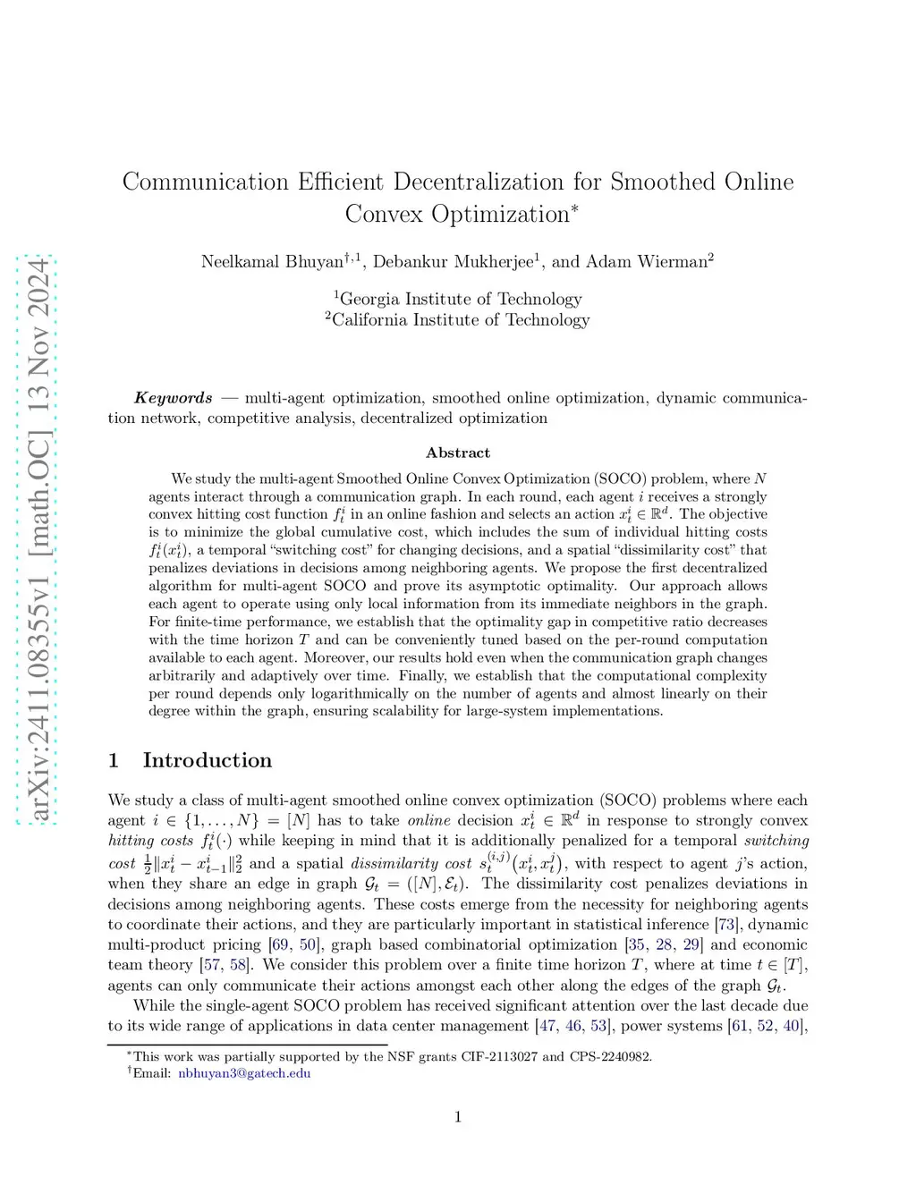 We study the multi-agent Smoothed Online Convex Optimization (SOCO) problem, where agents interact through a communication graph. In each round, each agent receives a strongly convex hitting cost function in an online fashion and selects an action . The objective is to minimize the global cumulative cost, which includes the sum of individual hitting costs , a temporal "switching cost" for changing decisions, and a spatial "dissimilarity cost" that penalizes deviations in decisions among neighboring agents. We propose the first truly decentralized algorithm ACORD for multi-agent SOCO that provably exhibits asymptotic optimality. Our approach allows each agent to operate using only local information from its immediate neighbors in the graph. For finite-time performance, we establish that the optimality gap in the competitive ratio decreases with time horizon and can be conveniently tuned based on the per-round computation available to each agent. Our algorithm benefits from a provably scalable computational complexity that depends only logarithmically on the number of agents and almost linearly on their degree within the graph. Moreover, our results hold even when the communication graph changes arbitrarily and adaptively over time. Finally, ACORD, by virtue of its asymptotic-optimality, is shown to be provably superior to the state-of-the-art LPC algorithm, while exhibiting much lower computational complexity. Extensive numerical experiments across various network topologies further corroborate our theoretical claims.