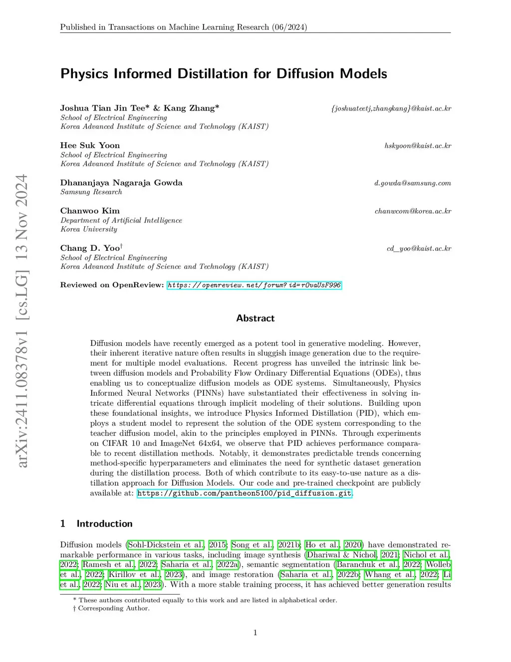 Diffusion models have recently emerged as a potent tool in generative modeling. However, their inherent iterative nature often results in sluggish image generation due to the requirement for multiple model evaluations. Recent progress has unveiled the intrinsic link between diffusion models and Probability Flow Ordinary Differential Equations (ODEs), thus enabling us to conceptualize diffusion models as ODE systems. Simultaneously, Physics Informed Neural Networks (PINNs) have substantiated their effectiveness in solving intricate differential equations through implicit modeling of their solutions. Building upon these foundational insights, we introduce Physics Informed Distillation (PID), which employs a student model to represent the solution of the ODE system corresponding to the teacher diffusion model, akin to the principles employed in PINNs. Through experiments on CIFAR 10 and ImageNet 64x64, we observe that PID achieves performance comparable to recent distillation methods. Notably, it demonstrates predictable trends concerning method-specific hyperparameters and eliminates the need for synthetic dataset generation during the distillation process. Both of which contribute to its easy-to-use nature as a distillation approach for Diffusion Models. Our code and pre-trained checkpoint are publicly available at: https://github.com/pantheon5100/pid_diffusion.git.