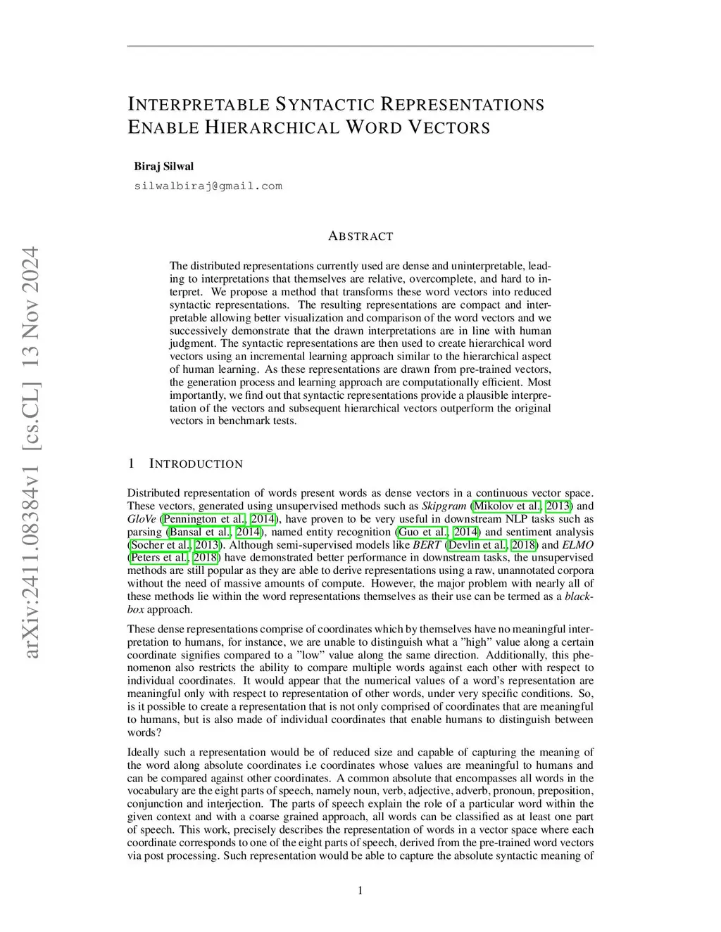 Interpretable Syntactic Representations Enable Hierarchical Word Vectors