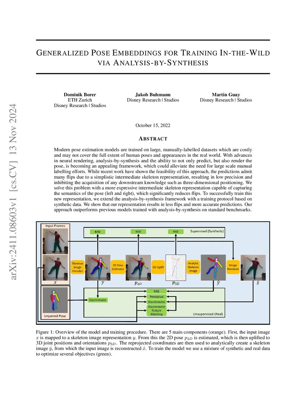 Modern pose estimation models are trained on large, manually-labelled datasets which are costly and may not cover the full extent of human poses and appearances in the real world. With advances in neural rendering, analysis-by-synthesis and the ability to not only predict, but also render the pose, is becoming an appealing framework, which could alleviate the need for large scale manual labelling efforts. While recent work have shown the feasibility of this approach, the predictions admit many flips due to a simplistic intermediate skeleton representation, resulting in low precision and inhibiting the acquisition of any downstream knowledge such as three-dimensional positioning. We solve this problem with a more expressive intermediate skeleton representation capable of capturing the semantics of the pose (left and right), which significantly reduces flips. To successfully train this new representation, we extend the analysis-by-synthesis framework with a training protocol based on synthetic data. We show that our representation results in less flips and more accurate predictions. Our approach outperforms previous models trained with analysis-by-synthesis on standard benchmarks.