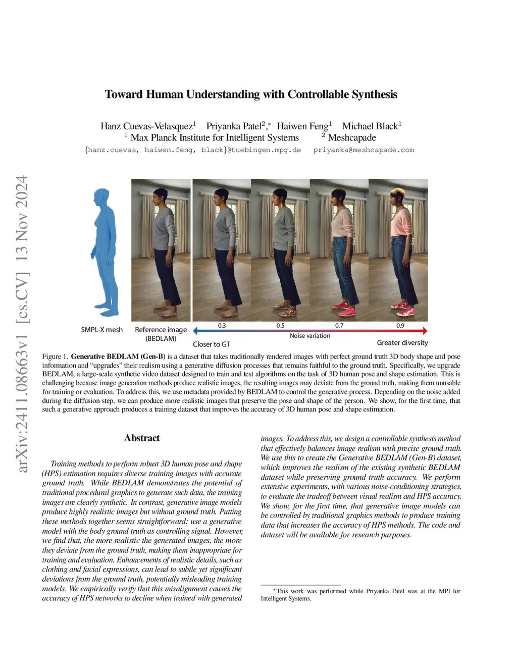 Training methods to perform robust 3D human pose and shape (HPS) estimation requires diverse training images with accurate ground truth. While BEDLAM demonstrates the potential of traditional procedural graphics to generate such data, the training images are clearly synthetic. In contrast, generative image models produce highly realistic images but without ground truth. Putting these methods together seems straightforward: use a generative model with the body ground truth as controlling signal. However, we find that, the more realistic the generated images, the more they deviate from the ground truth, making them inappropriate for training and evaluation. Enhancements of realistic details, such as clothing and facial expressions, can lead to subtle yet significant deviations from the ground truth, potentially misleading training models. We empirically verify that this misalignment causes the accuracy of HPS networks to decline when trained with generated images. To address this, we design a controllable synthesis method that effectively balances image realism with precise ground truth. We use this to create the Generative BEDLAM (Gen-B) dataset, which improves the realism of the existing synthetic BEDLAM dataset while preserving ground truth accuracy. We perform extensive experiments, with various noise-conditioning strategies, to evaluate the tradeoff between visual realism and HPS accuracy. We show, for the first time, that generative image models can be controlled by traditional graphics methods to produce training data that increases the accuracy of HPS methods.