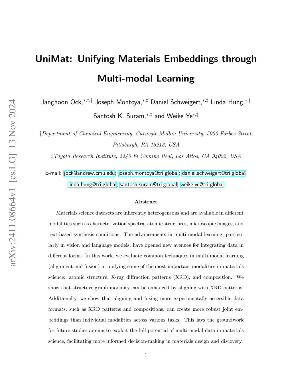 UniMat: Unifying Materials Embeddings through Multi-modal Learning