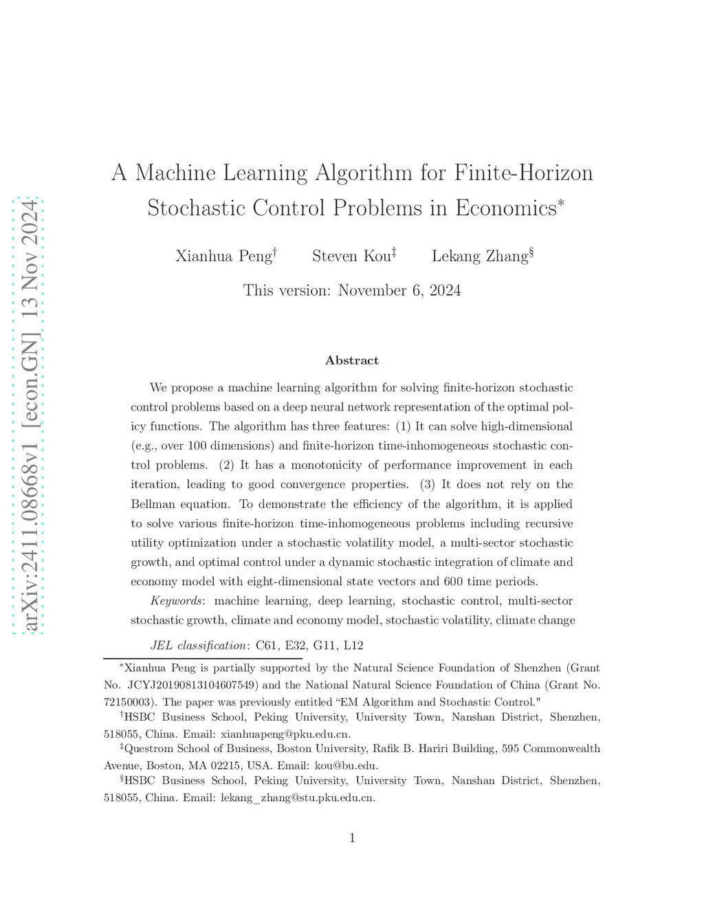 A Machine Learning Algorithm for Finite-Horizon Stochastic Control