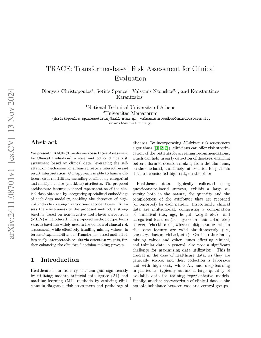 TRACE: Transformer-based Risk Assessment for Clinical Evaluation