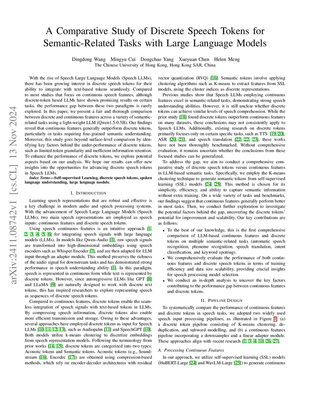 With the rise of Speech Large Language Models (Speech LLMs), there has been growing interest in discrete speech tokens for their ability to integrate with text-based tokens seamlessly. Compared to most studies that focus on continuous speech features, although discrete-token based LLMs have shown promising results on certain tasks, the performance gap between these two paradigms is rarely explored. In this paper, we present a fair and thorough comparison between discrete and continuous features across a variety of semantic-related tasks using a light-weight LLM (Qwen1.5-0.5B). Our findings reveal that continuous features generally outperform discrete tokens, particularly in tasks requiring fine-grained semantic understanding. Moreover, this study goes beyond surface-level comparison by identifying key factors behind the under-performance of discrete tokens, such as limited token granularity and inefficient information retention. To enhance the performance of discrete tokens, we explore potential aspects based on our analysis. We hope our results can offer new insights into the opportunities for advancing discrete speech tokens in Speech LLMs.