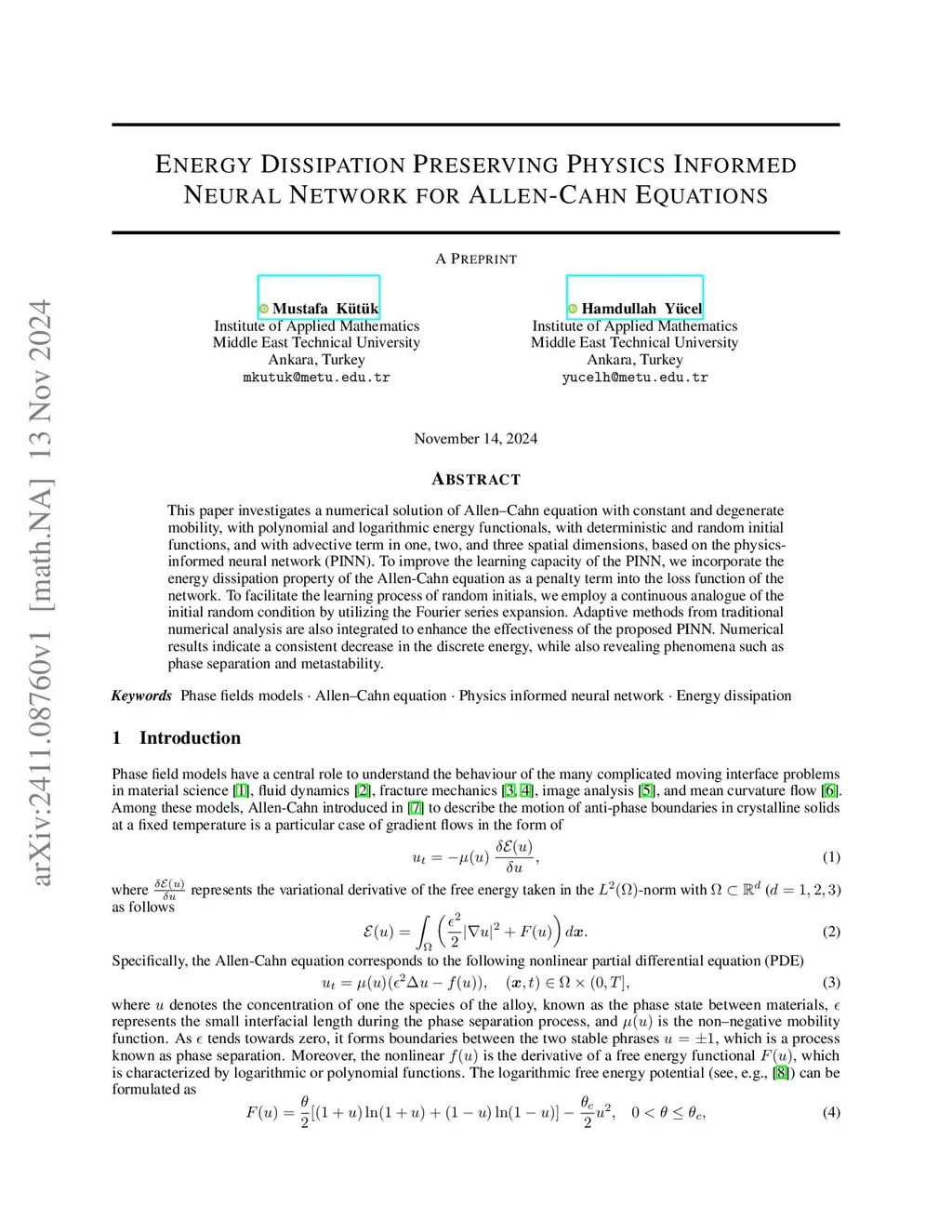 Energy Dissipation Preserving Physics Informed Neural Network for Allen-Cahn Equations