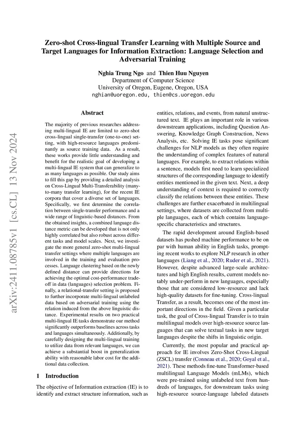Zero-shot Cross-lingual Transfer Learning with Multiple Source and
