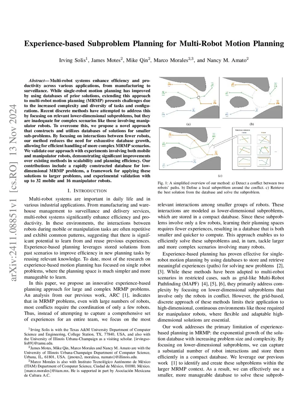 Experience-based Subproblem Planning for Multi-Robot Motion Planning