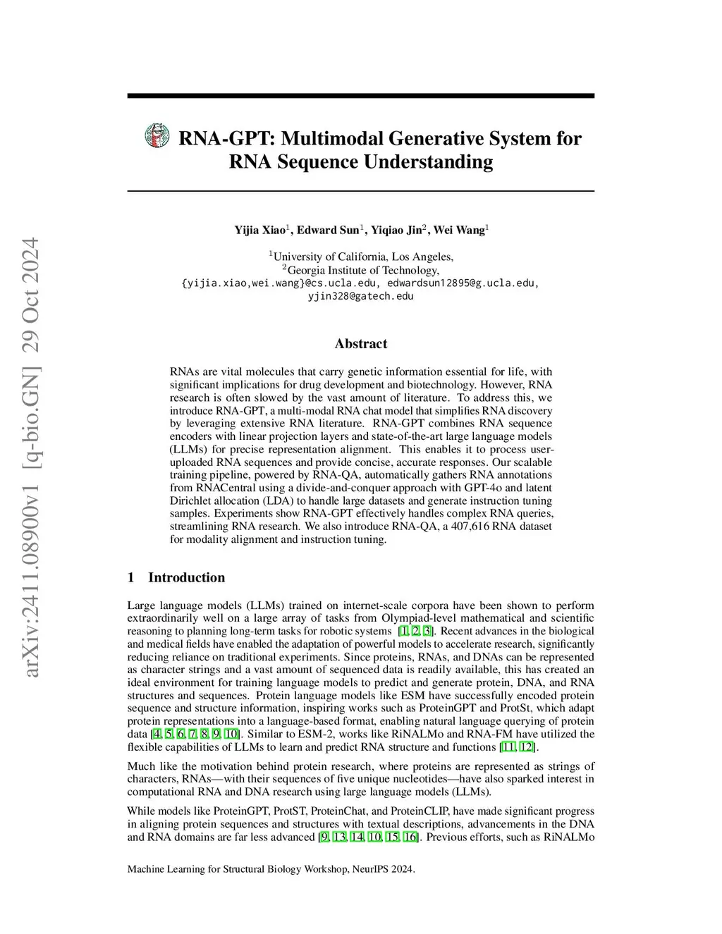 RNA-GPT: Multimodal Generative System for RNA Sequence Understanding