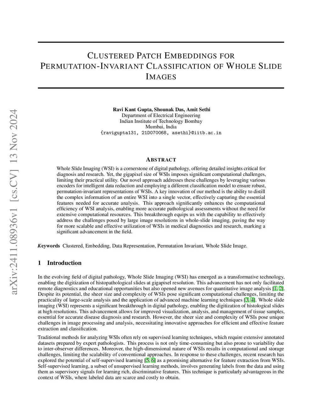 Whole Slide Imaging (WSI) is a cornerstone of digital pathology, offering detailed insights critical for diagnosis and research. Yet, the gigapixel size of WSIs imposes significant computational challenges, limiting their practical utility. Our novel approach addresses these challenges by leveraging various encoders for intelligent data reduction and employing a different classification model to ensure robust, permutation-invariant representations of WSIs. A key innovation of our method is the ability to distill the complex information of an entire WSI into a single vector, effectively capturing the essential features needed for accurate analysis. This approach significantly enhances the computational efficiency of WSI analysis, enabling more accurate pathological assessments without the need for extensive computational resources. This breakthrough equips us with the capability to effectively address the challenges posed by large image resolutions in whole-slide imaging, paving the way for more scalable and effective utilization of WSIs in medical diagnostics and research, marking a significant advancement in the field.