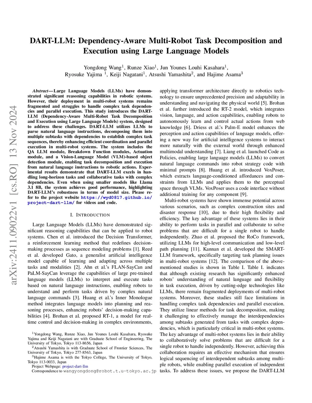 DART-LLM: Dependency-Aware Multi-Robot Task Decomposition and Execution using Large Language Models