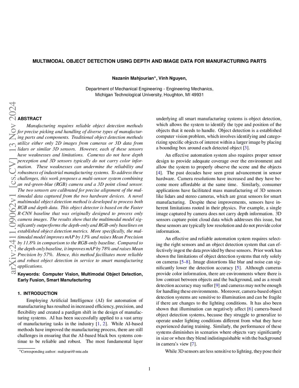 Multimodal Object Detection using Depth and Image Data for Manufacturing Parts