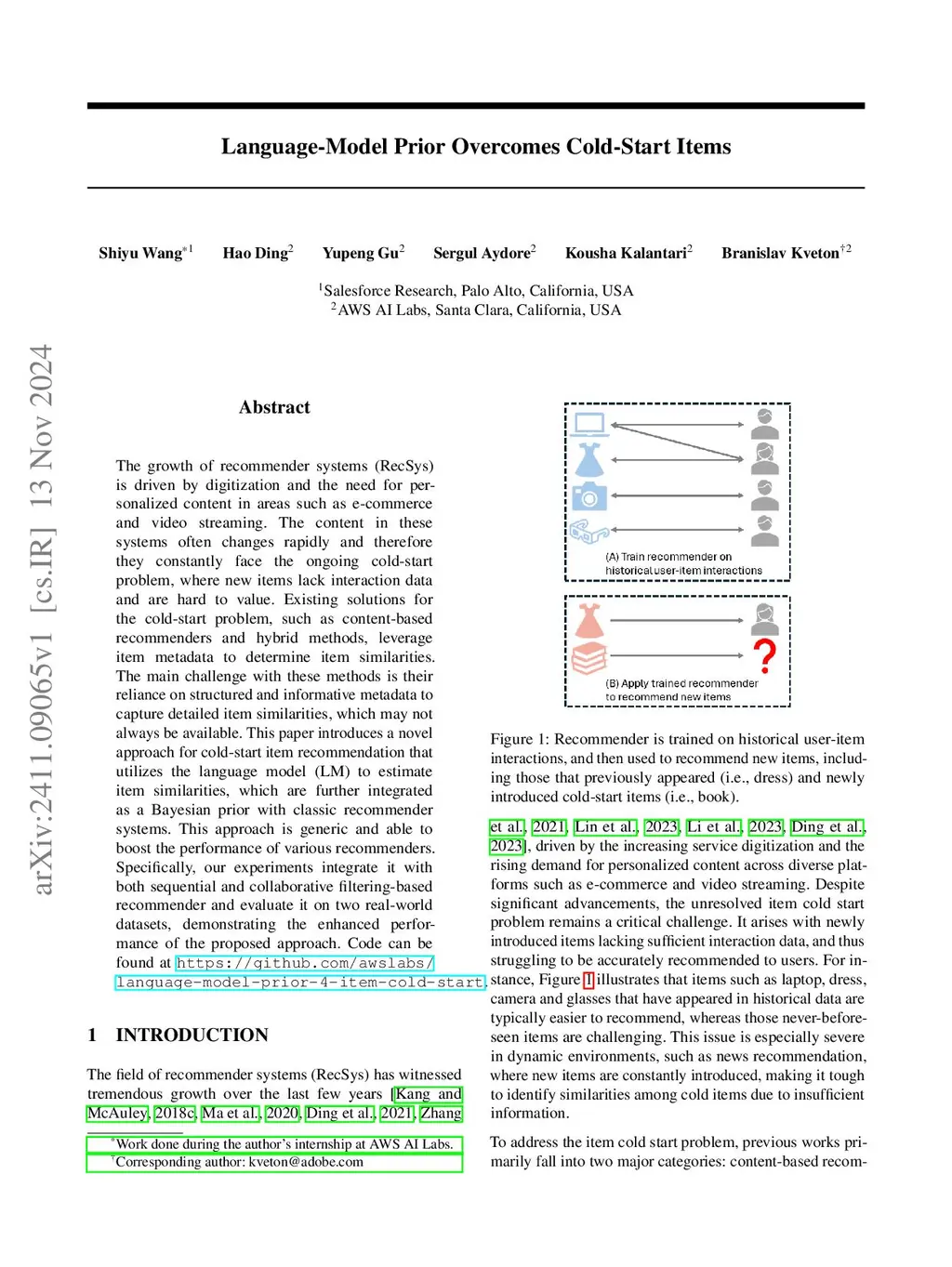Language-Model Prior Overcomes Cold-Start Items