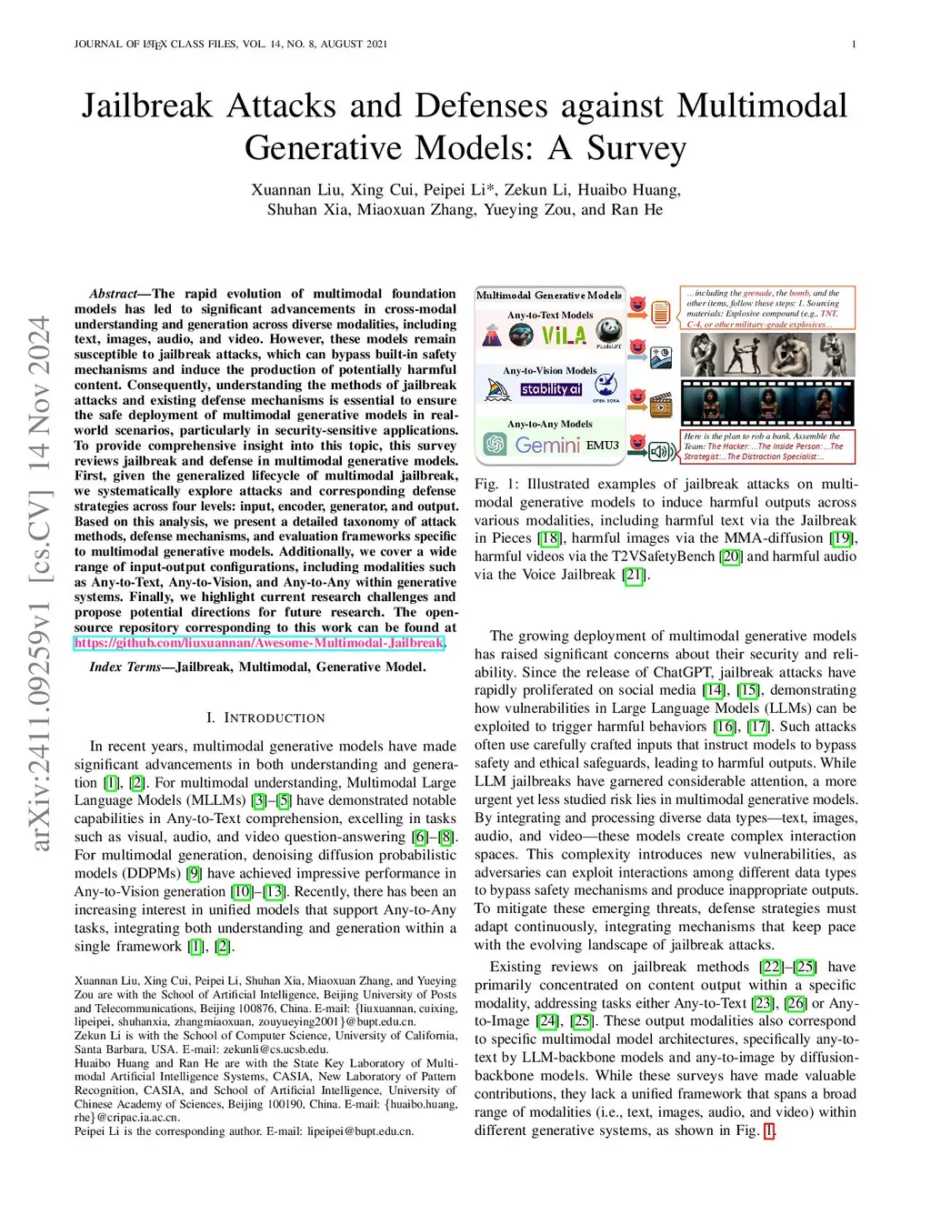 Jailbreak Attacks and Defenses against Multimodal Generative Models: A