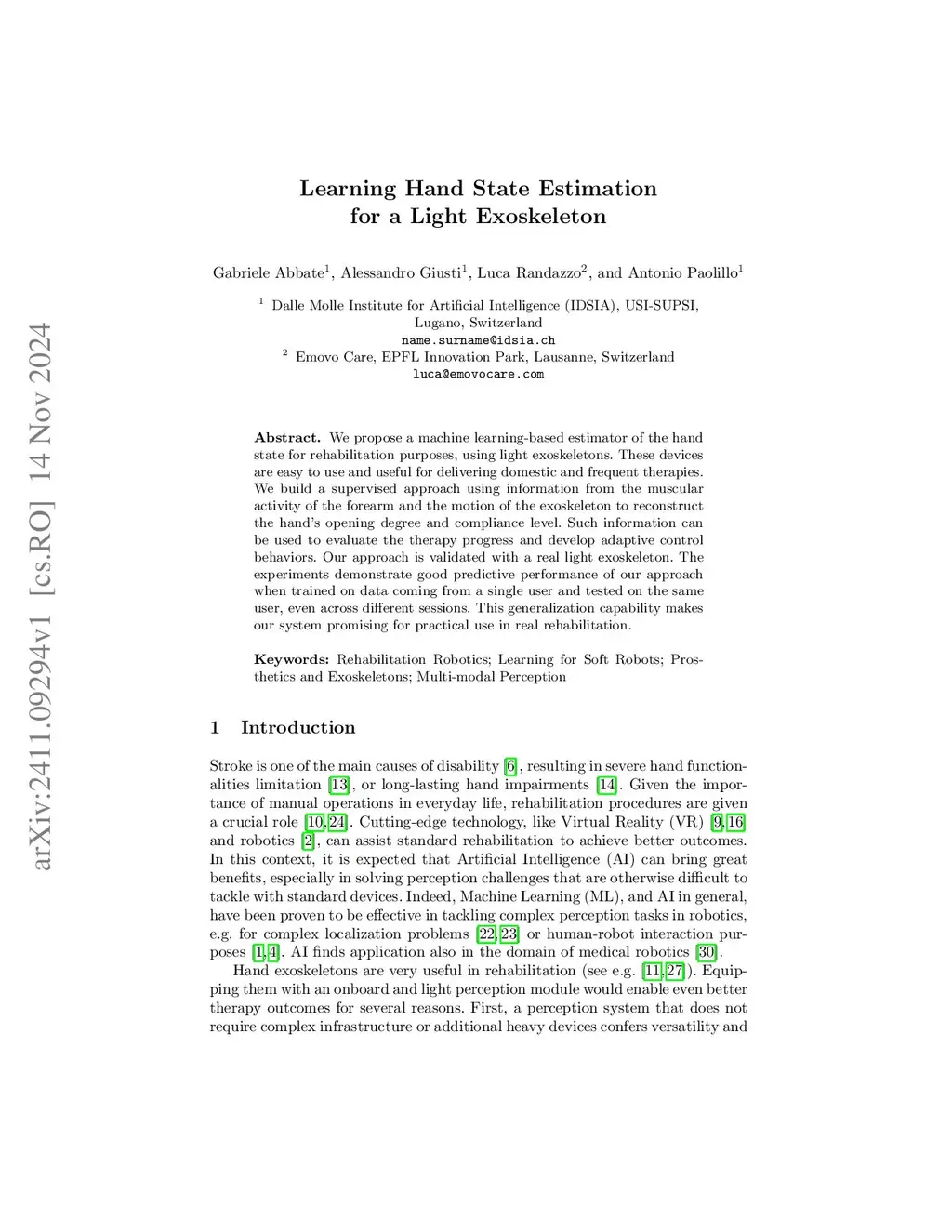 Learning Hand State Estimation for a Light Exoskeleton