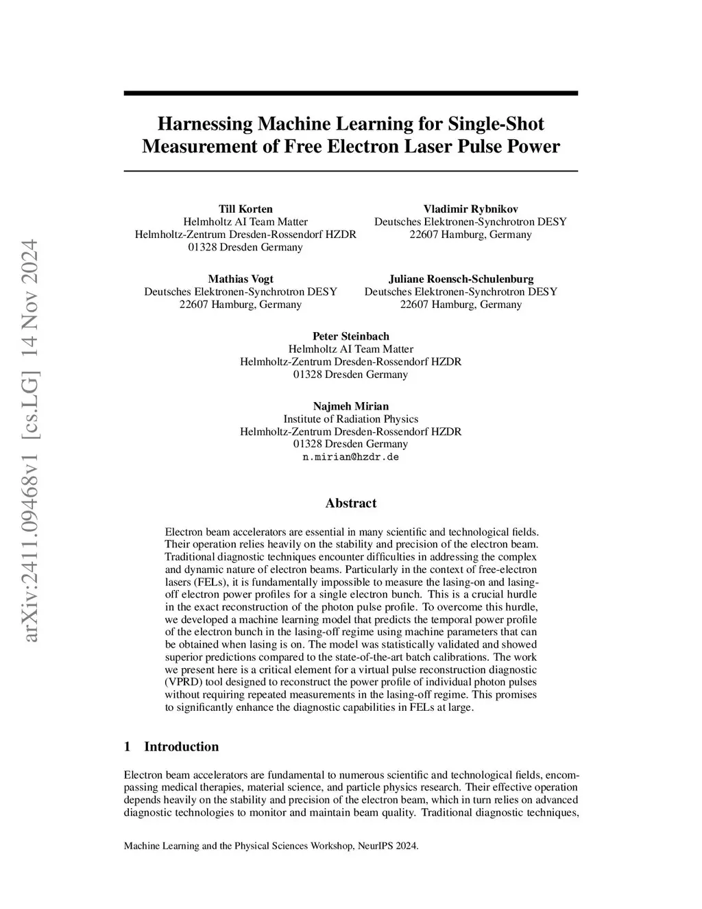 Electron beam accelerators are essential in many scientific and technological fields. Their operation relies heavily on the stability and precision of the electron beam. Traditional diagnostic techniques encounter difficulties in addressing the complex and dynamic nature of electron beams. Particularly in the context of free-electron lasers (FELs), it is fundamentally impossible to measure the lasing-on and lasingoff electron power profiles for a single electron bunch. This is a crucial hurdle in the exact reconstruction of the photon pulse profile. To overcome this hurdle, we developed a machine learning model that predicts the temporal power profile of the electron bunch in the lasing-off regime using machine parameters that can be obtained when lasing is on. The model was statistically validated and showed superior predictions compared to the state-of-the-art batch calibrations. The work we present here is a critical element for a virtual pulse reconstruction diagnostic (VPRD) tool designed to reconstruct the power profile of individual photon pulses without requiring repeated measurements in the lasing-off regime. This promises to significantly enhance the diagnostic capabilities in FELs at large.