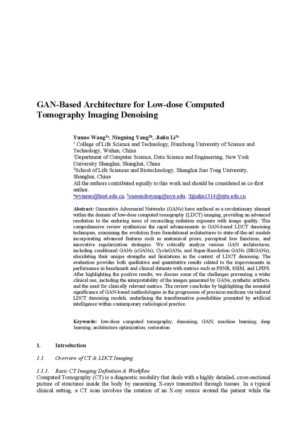 GAN-Based Architecture for Low-dose Computed Tomography Imaging Denoising