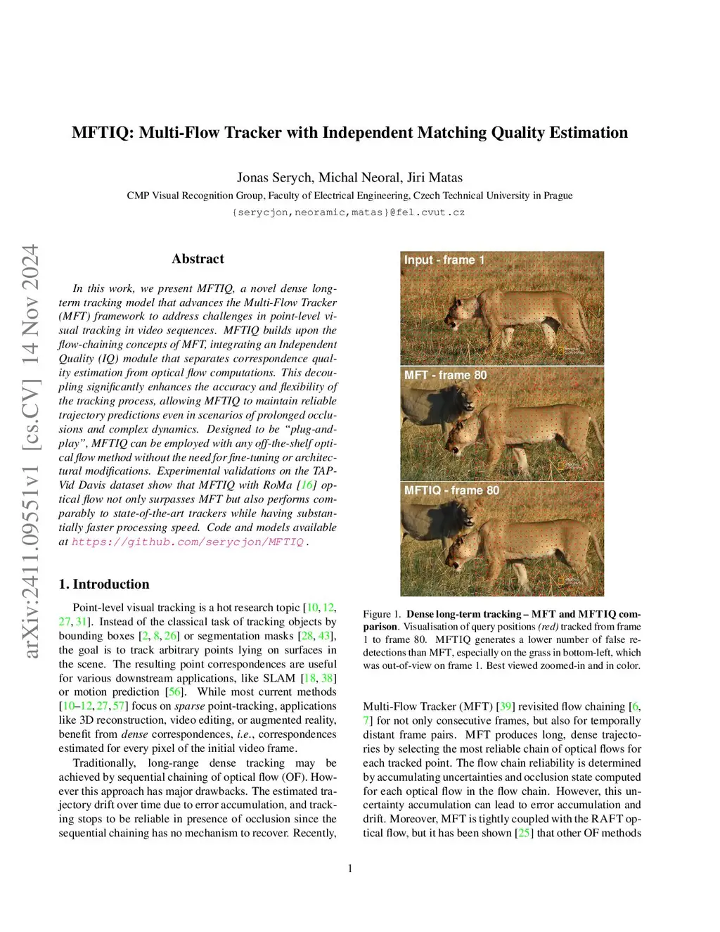 In this work, we present MFTIQ, a novel dense long-term tracking model that advances the Multi-Flow Tracker (MFT) framework to address challenges in point-level visual tracking in video sequences. MFTIQ builds upon the flow-chaining concepts of MFT, integrating an Independent Quality (IQ) module that separates correspondence quality estimation from optical flow computations. This decoupling significantly enhances the accuracy and flexibility of the tracking process, allowing MFTIQ to maintain reliable trajectory predictions even in scenarios of prolonged occlusions and complex dynamics. Designed to be "plug-and-play", MFTIQ can be employed with any off-the-shelf optical flow method without the need for fine-tuning or architectural modifications. Experimental validations on the TAP-Vid Davis dataset show that MFTIQ with RoMa optical flow not only surpasses MFT but also performs comparably to state-of-the-art trackers while having substantially faster processing speed. Code and models available at https://github.com/serycjon/MFTIQ .