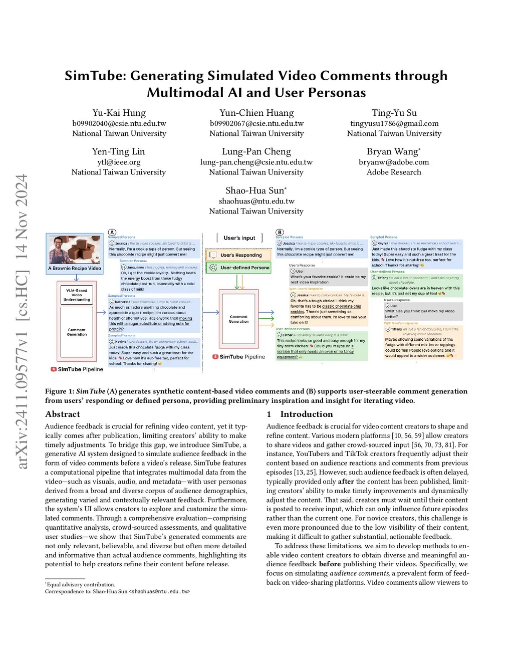 SimTube: Generating Simulated Video Comments through Multimodal AI and