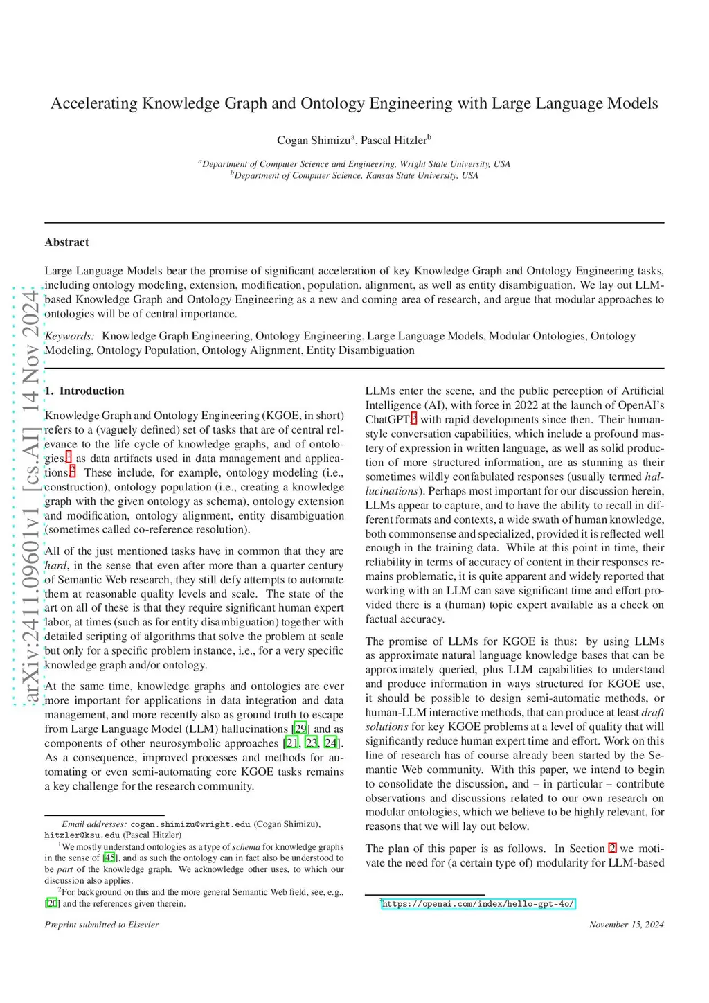 Large Language Models bear the promise of significant acceleration of key Knowledge Graph and Ontology Engineering tasks, including ontology modeling, extension, modification, population, alignment, as well as entity disambiguation. We lay out LLM-based Knowledge Graph and Ontology Engineering as a new and coming area of research, and argue that modular approaches to ontologies will be of central importance.