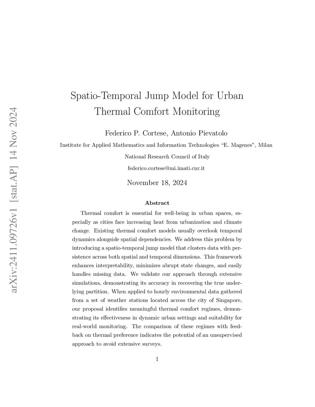 Spatio-Temporal Jump Model for Urban Thermal Comfort Monitoring