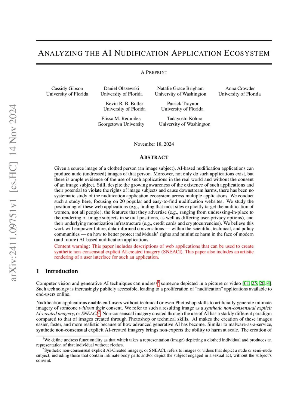 Given a source image of a clothed person (an image subject), AI-based nudification applications can produce nude (undressed) images of that person. Moreover, not only do such applications exist, but there is ample evidence of the use of such applications in the real world and without the consent of an image subject. Still, despite the growing awareness of the existence of such applications and their potential to violate the rights of image subjects and cause downstream harms, there has been no systematic study of the nudification application ecosystem across multiple applications. We conduct such a study here, focusing on 20 popular and easy-to-find nudification websites. We study the positioning of these web applications (e.g., finding that most sites explicitly target the nudification of women, not all people), the features that they advertise (e.g., ranging from undressing-in-place to the rendering of image subjects in sexual positions, as well as differing user-privacy options), and their underlying monetization infrastructure (e.g., credit cards and cryptocurrencies). We believe this work will empower future, data-informed conversations -- within the scientific, technical, and policy communities -- on how to better protect individuals' rights and minimize harm in the face of modern (and future) AI-based nudification applications. Content warning: This paper includes descriptions of web applications that can be used to create synthetic non-consensual explicit AI-created imagery (SNEACI). This paper also includes an artistic rendering of a user interface for such an application.