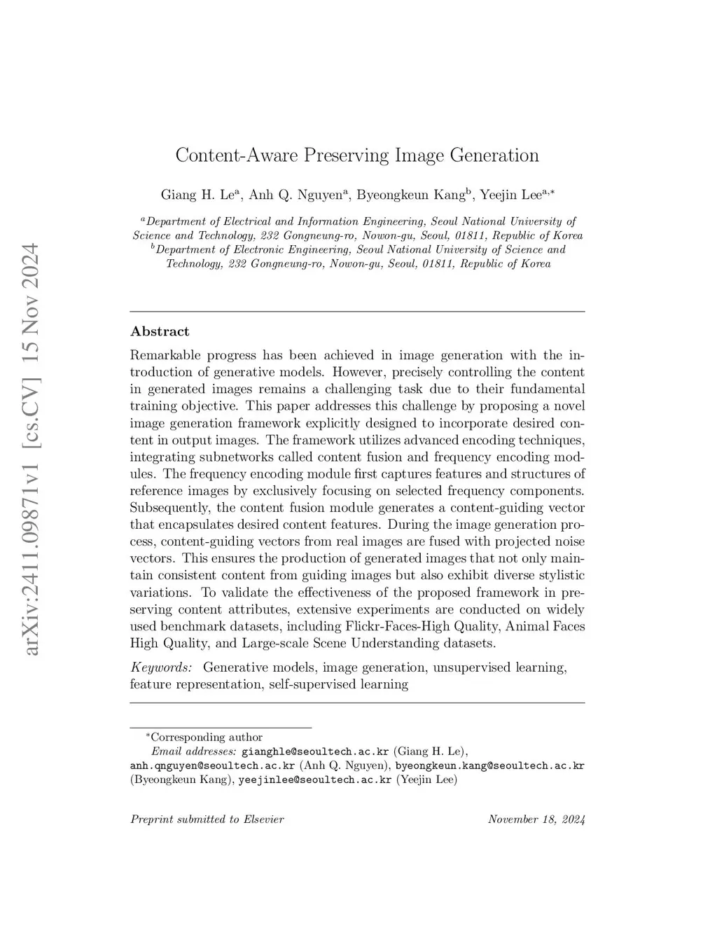 Content-Aware Preserving Image Generation