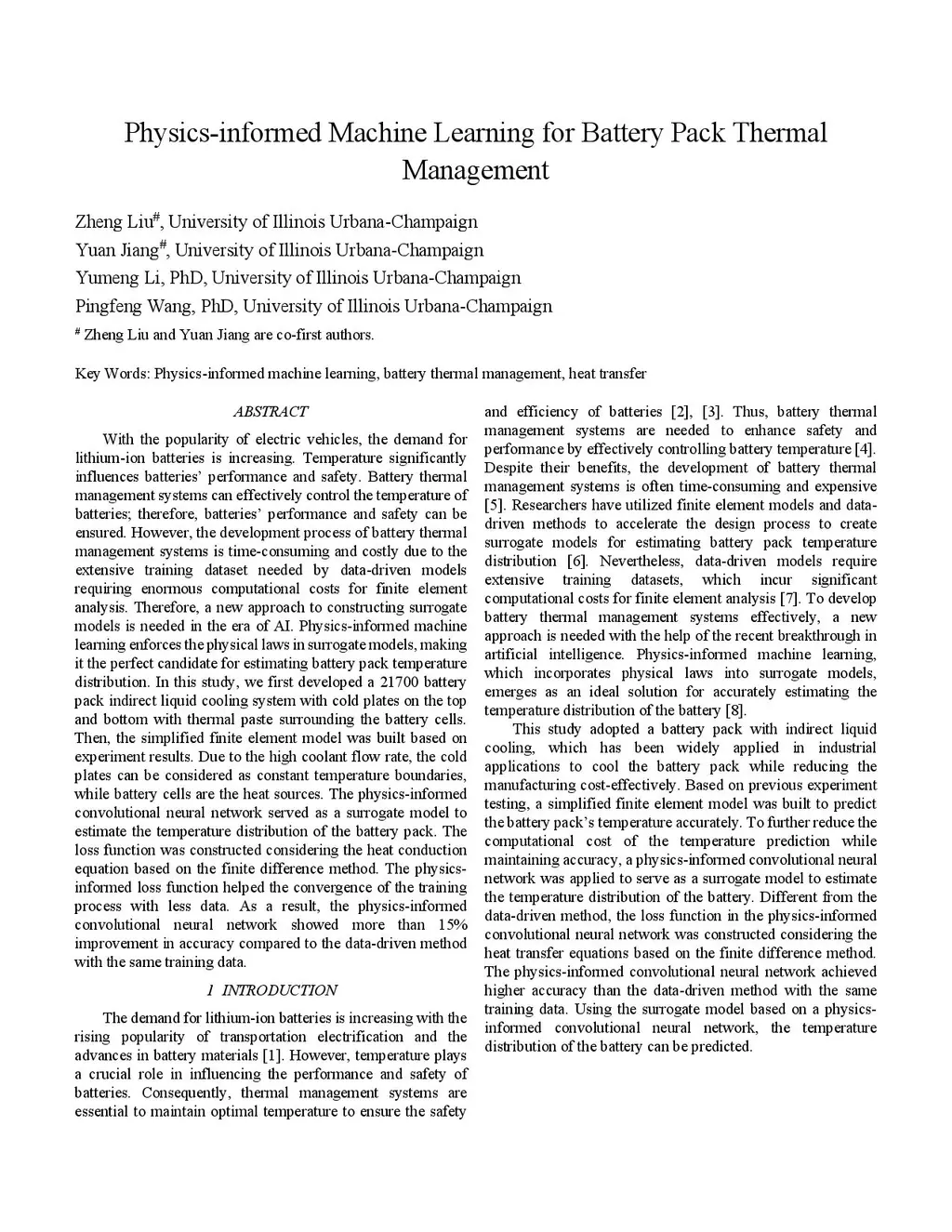 Physics-informed Machine Learning for Battery Pack Thermal Management