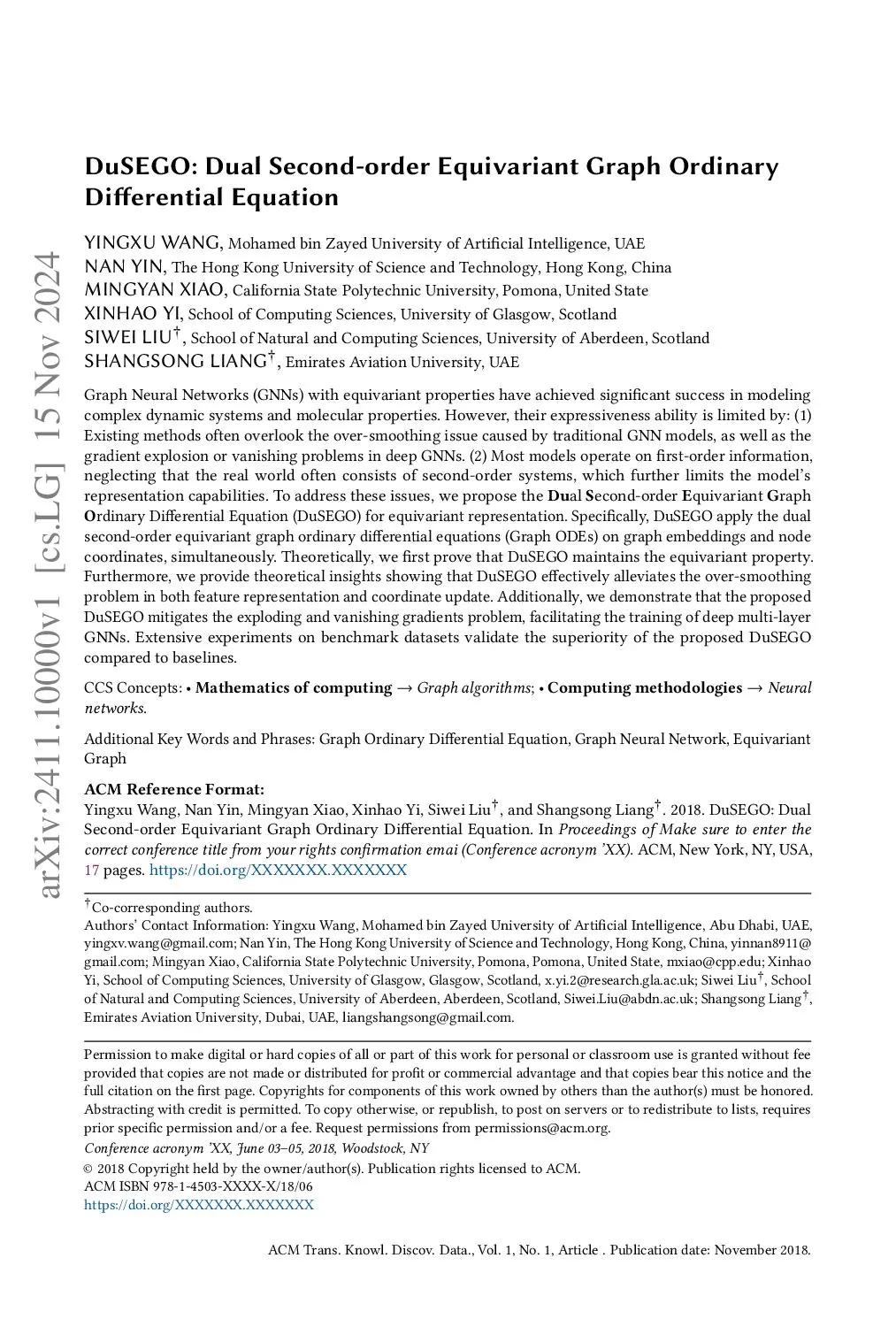 DuSEGO: Dual Second-order Equivariant Graph Ordinary Differential Equation