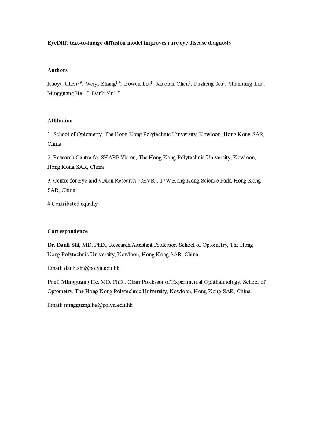 EyeDiff: text-to-image diffusion model improves rare eye disease