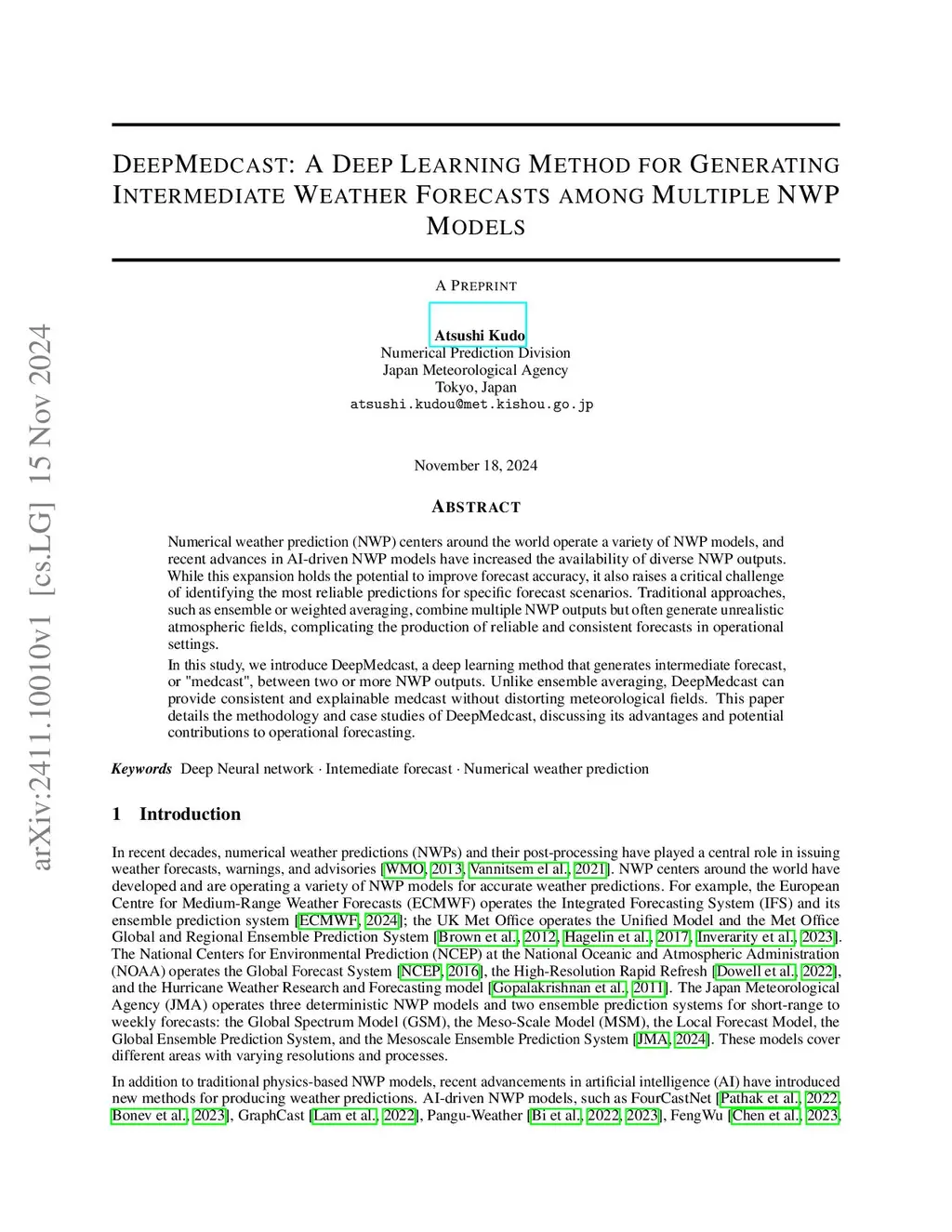 DeepMedcast: A Deep Learning Method for Generating Intermediate Weather Forecasts among Multiple NWP Models