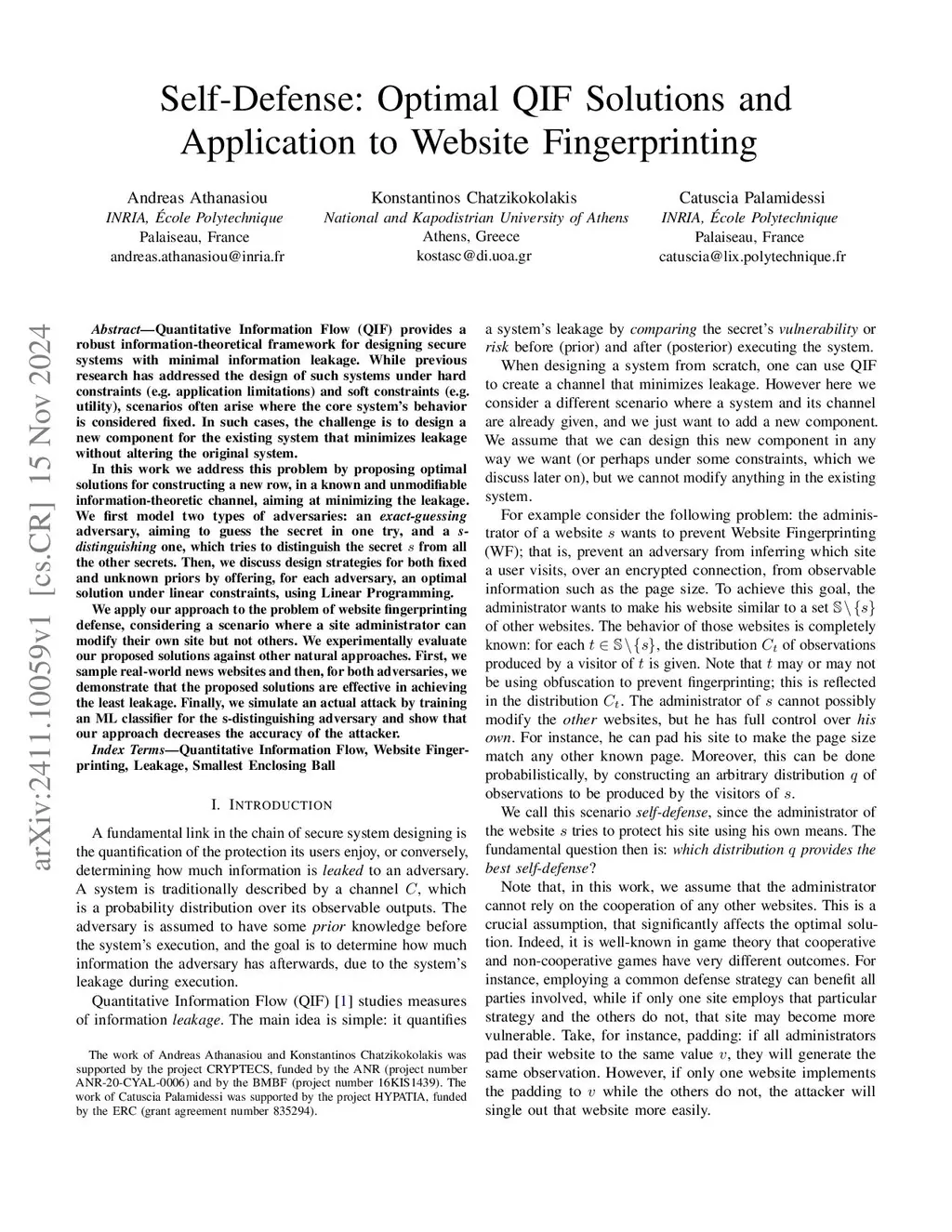 Self-Defense: Optimal QIF Solutions and Application to Website