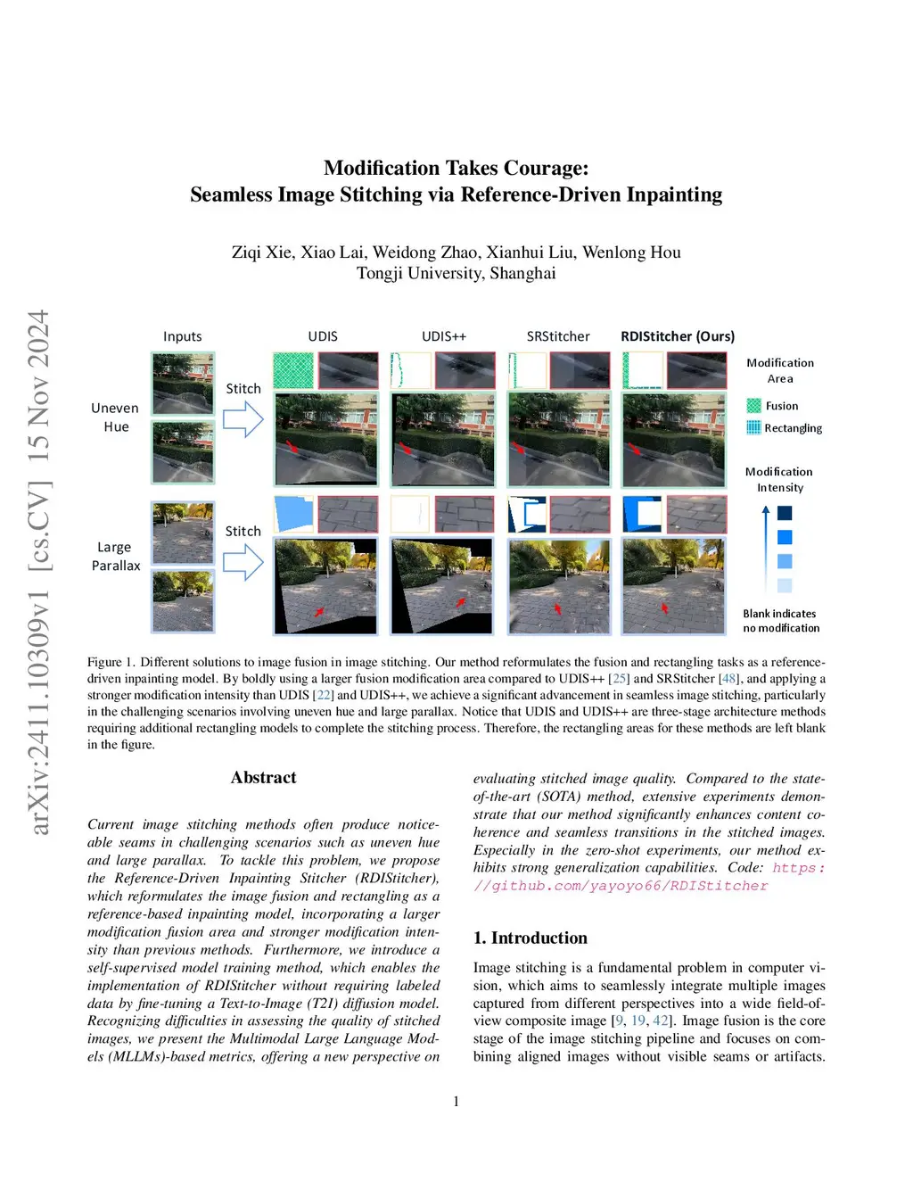 Modification Takes Courage: Seamless Image Stitching via Reference-Driven Inpainting