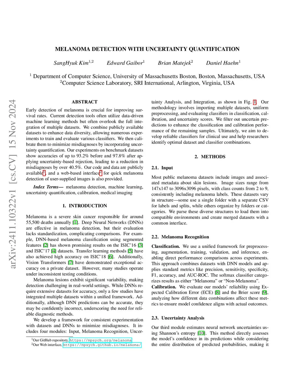 Melanoma Detection with Uncertainty Quantification