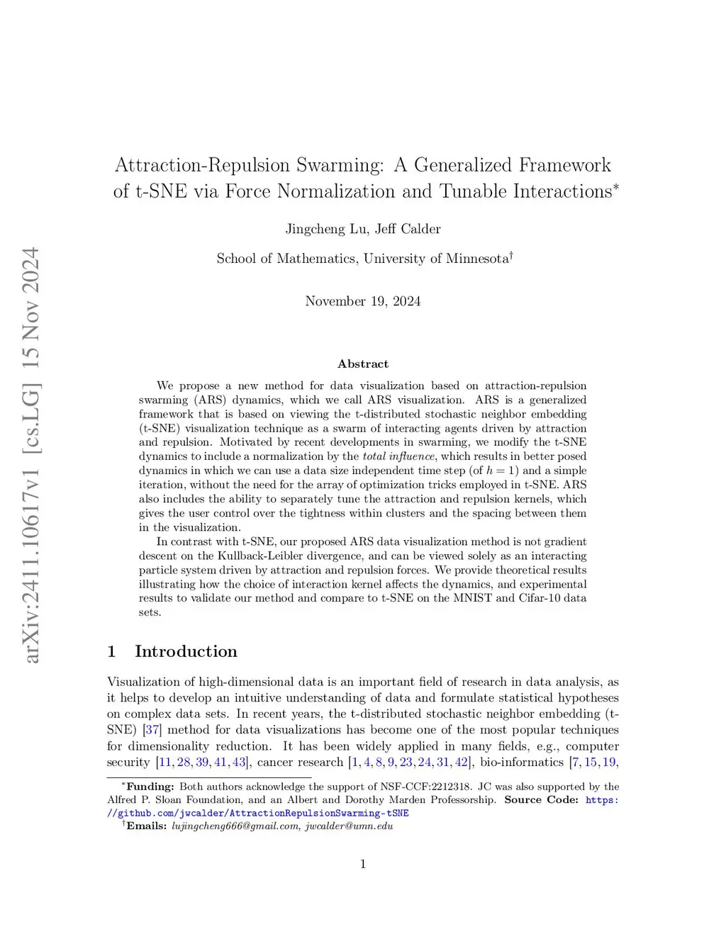 Attraction-Repulsion Swarming: A Generalized Framework of t-SNE via