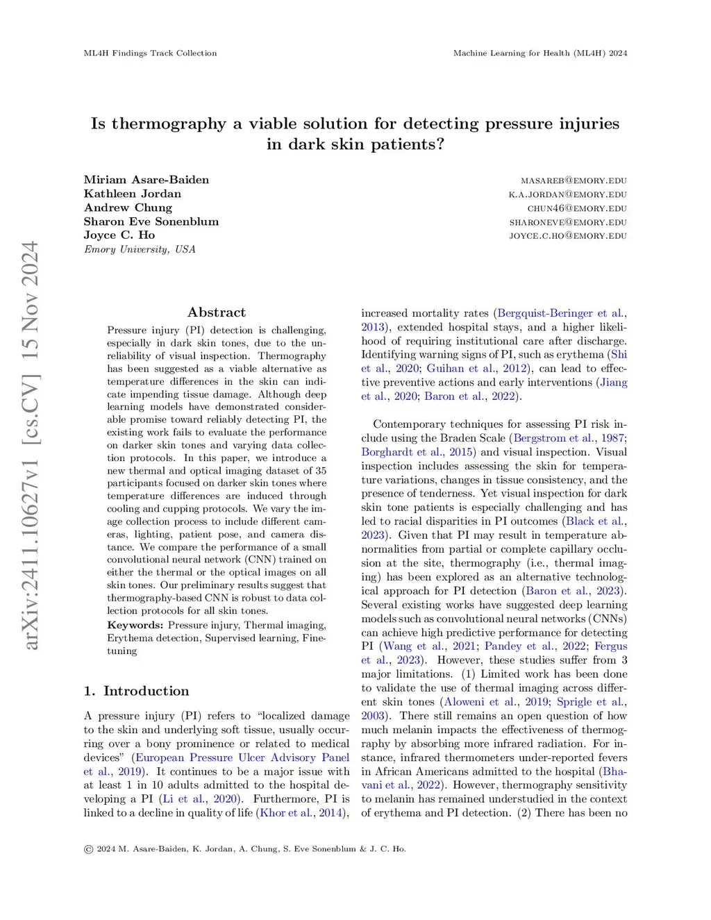 Pressure injury (PI) detection is challenging, especially in dark skin tones, due to the unreliability of visual inspection. Thermography has been suggested as a viable alternative as temperature differences in the skin can indicate impending tissue damage. Although deep learning models have demonstrated considerable promise toward reliably detecting PI, the existing work fails to evaluate the performance on darker skin tones and varying data collection protocols. In this paper, we introduce a new thermal and optical imaging dataset of 35 participants focused on darker skin tones where temperature differences are induced through cooling and cupping protocols. We vary the image collection process to include different cameras, lighting, patient pose, and camera distance. We compare the performance of a small convolutional neural network (CNN) trained on either the thermal or the optical images on all skin tones. Our preliminary results suggest that thermography-based CNN is robust to data collection protocols for all skin tones.