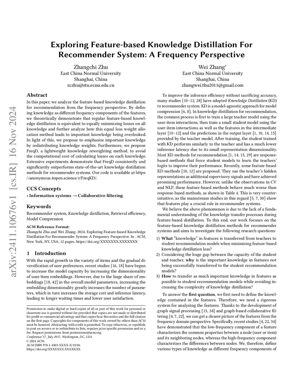 Exploring Feature-based Knowledge Distillation for Recommender System: A Frequency Perspective