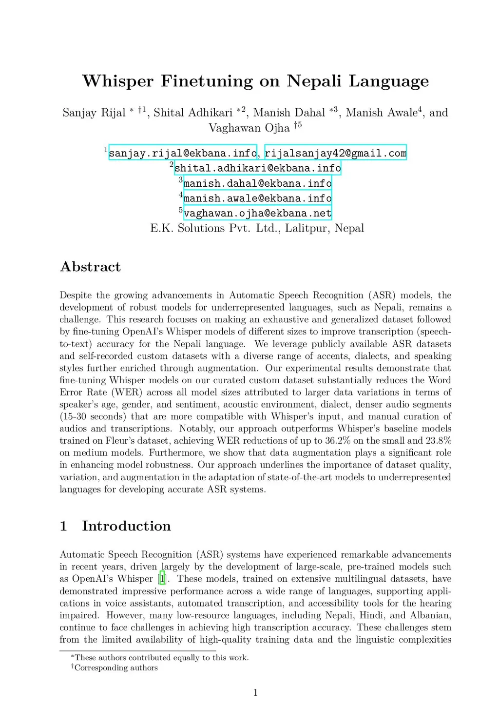 Despite the growing advancements in Automatic Speech Recognition (ASR) models, the development of robust models for underrepresented languages, such as Nepali, remains a challenge. This research focuses on making an exhaustive and generalized dataset followed by fine-tuning OpenAI's Whisper models of different sizes to improve transcription (speech-to-text) accuracy for the Nepali language. We leverage publicly available ASR datasets and self-recorded custom datasets with a diverse range of accents, dialects, and speaking styles further enriched through augmentation. Our experimental results demonstrate that fine-tuning Whisper models on our curated custom dataset substantially reduces the Word Error Rate (WER) across all model sizes attributed to larger data variations in terms of speaker's age, gender, and sentiment, acoustic environment, dialect, denser audio segments (15-30 seconds) that are more compatible with Whisper's input, and manual curation of audios and transcriptions. Notably, our approach outperforms Whisper's baseline models trained on Fleur's dataset, achieving WER reductions of up to 36.2% on the small and 23.8% on medium models. Furthermore, we show that data augmentation plays a significant role in enhancing model robustness. Our approach underlines the importance of dataset quality, variation, and augmentation in the adaptation of state-of-the-art models to underrepresented languages for developing accurate ASR systems.