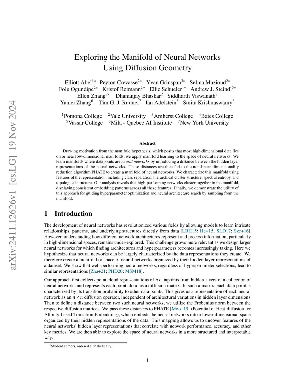 Exploring the Manifold of Neural Networks Using Diffusion Geometry