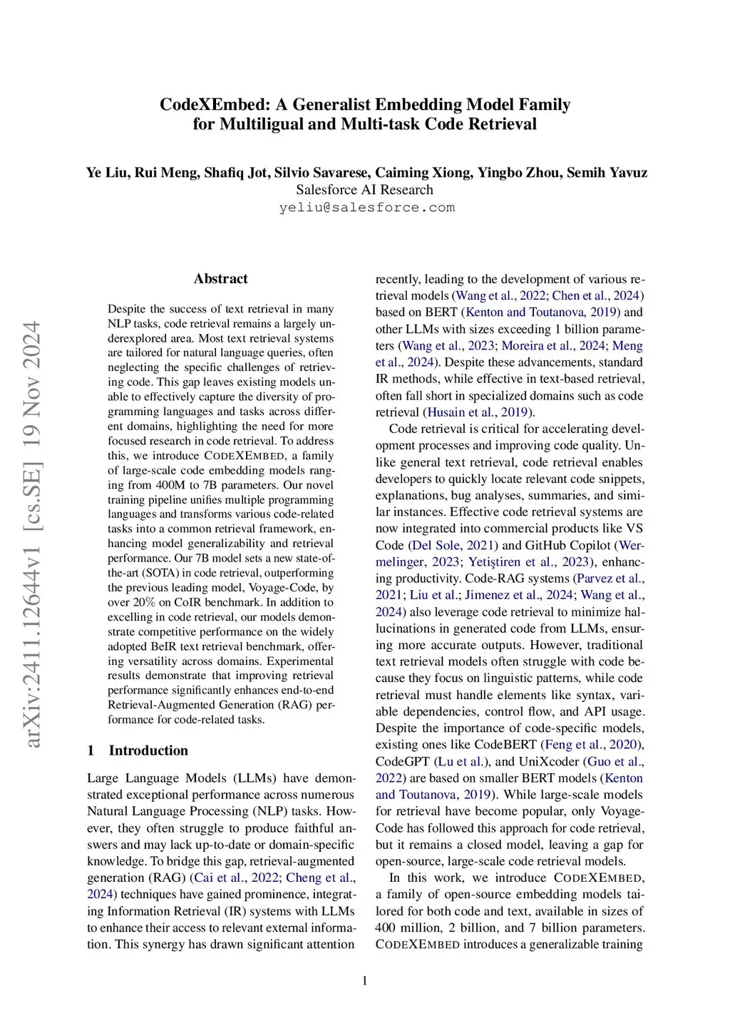 CodeXEmbed: A Generalist Embedding Model Family for Multiligual and