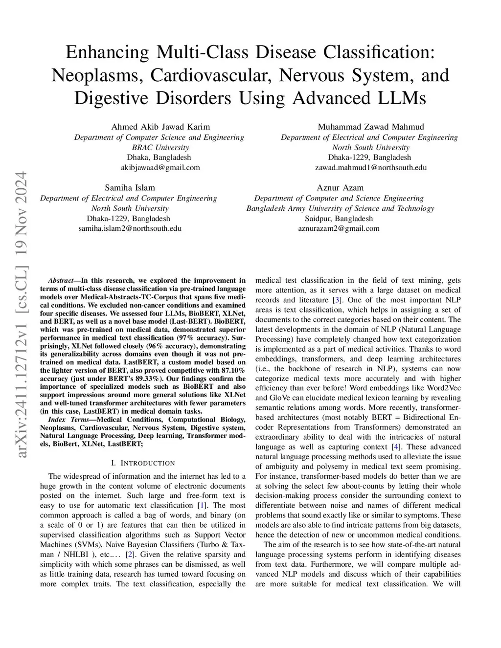Nervous System, and Digestive Disorders Using Advanced LLMs