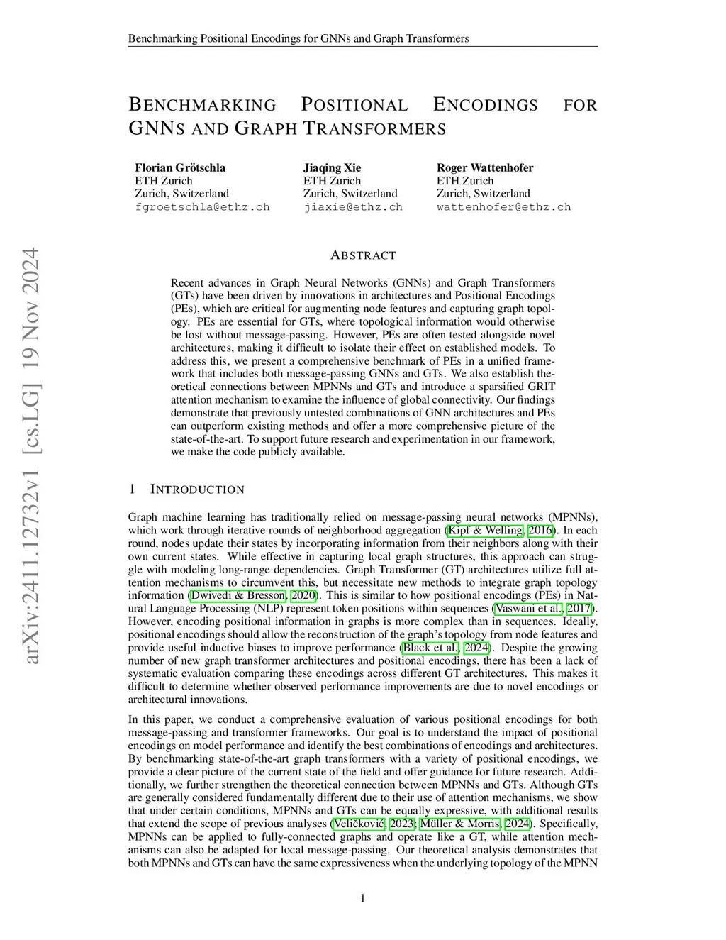 Benchmarking Positional Encodings for GNNs and Graph Transformers