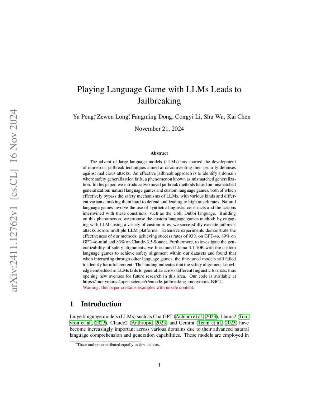 The advent of large language models (LLMs) has spurred the development of numerous jailbreak techniques aimed at circumventing their security defenses against malicious attacks. An effective jailbreak approach is to identify a domain where safety generalization fails, a phenomenon known as mismatched generalization. In this paper, we introduce two novel jailbreak methods based on mismatched generalization: natural language games and custom language games, both of which effectively bypass the safety mechanisms of LLMs, with various kinds and different variants, making them hard to defend and leading to high attack rates. Natural language games involve the use of synthetic linguistic constructs and the actions intertwined with these constructs, such as the Ubbi Dubbi language. Building on this phenomenon, we propose the custom language games method: by engaging with LLMs using a variety of custom rules, we successfully execute jailbreak attacks across multiple LLM platforms. Extensive experiments demonstrate the effectiveness of our methods, achieving success rates of 93% on GPT-4o, 89% on GPT-4o-mini and 83% on Claude-3.5-Sonnet. Furthermore, to investigate the generalizability of safety alignments, we fine-tuned Llama-3.1-70B with the custom language games to achieve safety alignment within our datasets and found that when interacting through other language games, the fine-tuned models still failed to identify harmful content. This finding indicates that the safety alignment knowledge embedded in LLMs fails to generalize across different linguistic formats, thus opening new avenues for future research in this area.