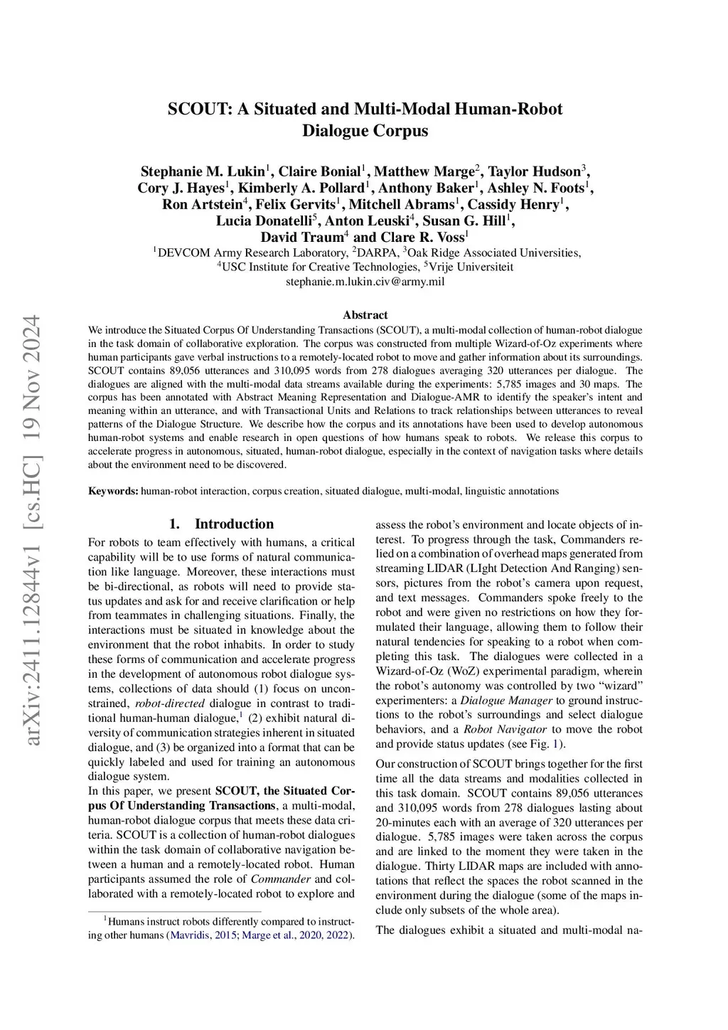 SCOUT: A Situated and Multi-Modal Human-Robot Dialogue Corpus