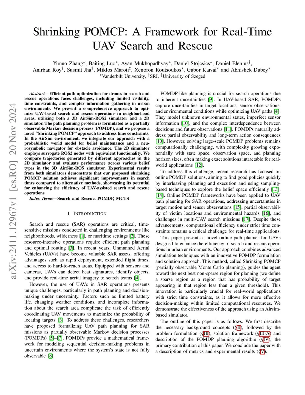 Shrinking POMCP: A Framework for Real-Time UAV Search and Rescue