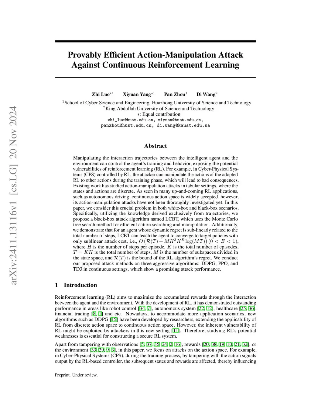 Provably Efficient Action-Manipulation Attack Against Continuous