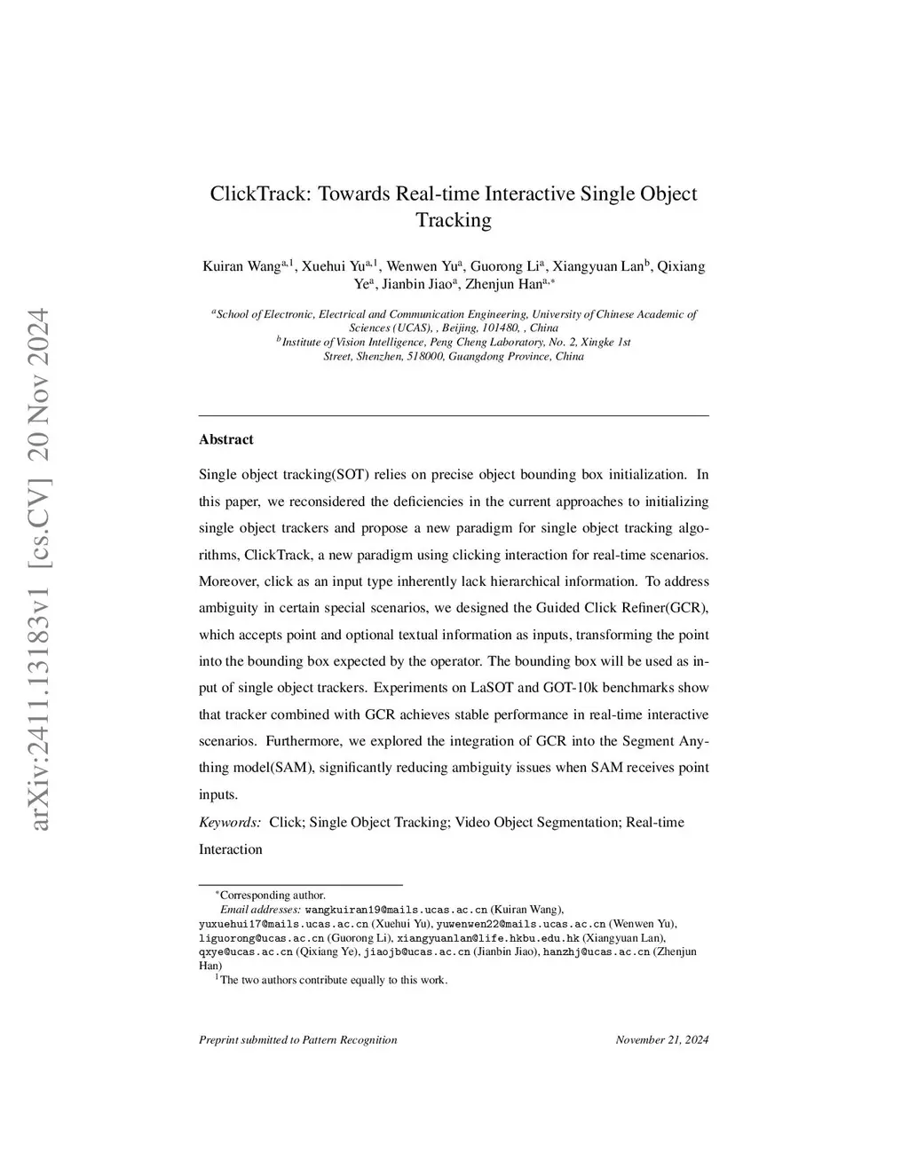 Single object tracking(SOT) relies on precise object bounding box initialization. In this paper, we reconsidered the deficiencies in the current approaches to initializing single object trackers and propose a new paradigm for single object tracking algorithms, ClickTrack, a new paradigm using clicking interaction for real-time scenarios. Moreover, click as an input type inherently lack hierarchical information. To address ambiguity in certain special scenarios, we designed the Guided Click Refiner(GCR), which accepts point and optional textual information as inputs, transforming the point into the bounding box expected by the operator. The bounding box will be used as input of single object trackers. Experiments on LaSOT and GOT-10k benchmarks show that tracker combined with GCR achieves stable performance in real-time interactive scenarios. Furthermore, we explored the integration of GCR into the Segment Anything model(SAM), significantly reducing ambiguity issues when SAM receives point inputs.