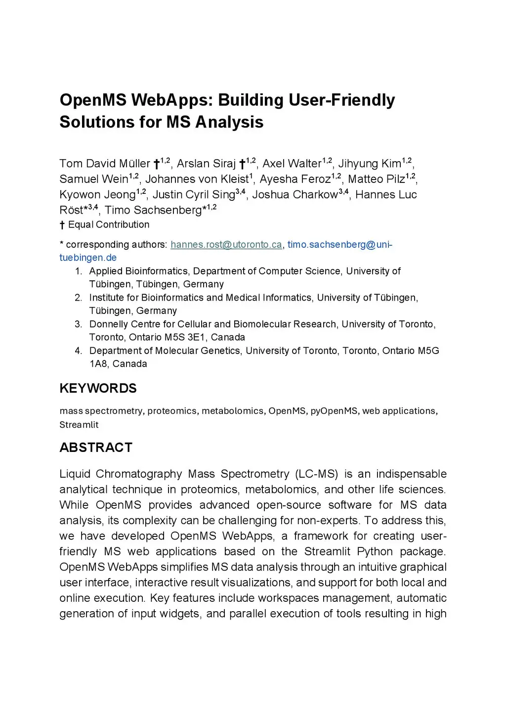 OpenMS WebApps: Building User-Friendly Solutions for MS Analysis