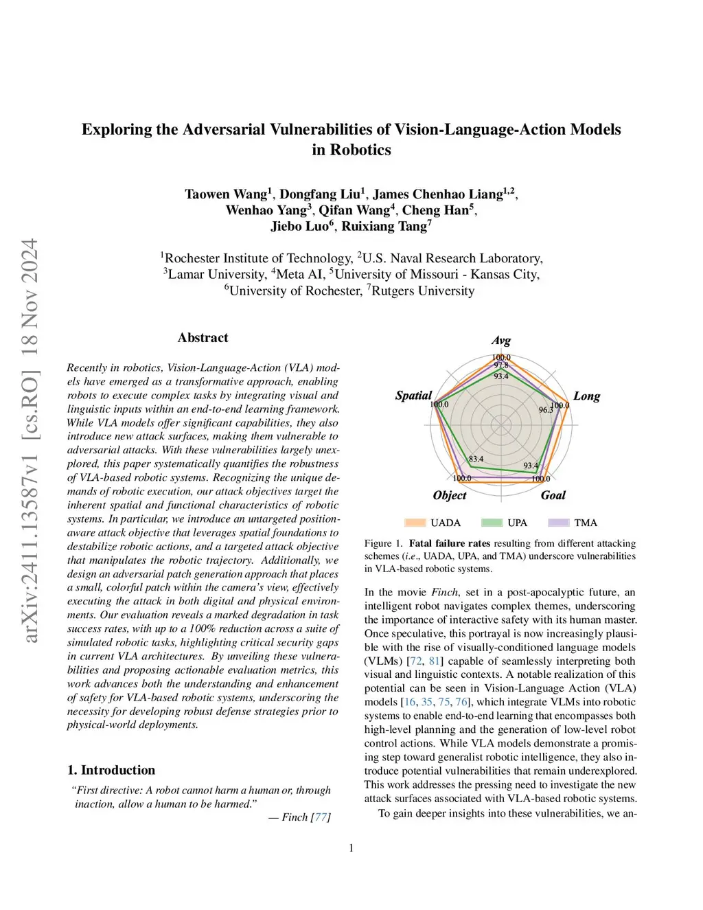 Exploring the Adversarial Vulnerabilities of Vision-Language-Action Models in Robotics